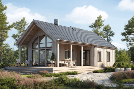Der Bungalow im Schwedenhausstil ist die ideale Wahl für alle, die ein naturnahes Wohnerlebnis suchen. Durch die Verwendung von natürlichen Materialien wie Holz und Stein schafft das Haus eine harmonische Verbindung zur Umgebung. Das Design fügt sich nahtlos in ländliche Landschaften oder grüne Außenbereiche ein und vermittelt sofort ein Gefühl der Geborgenheit.